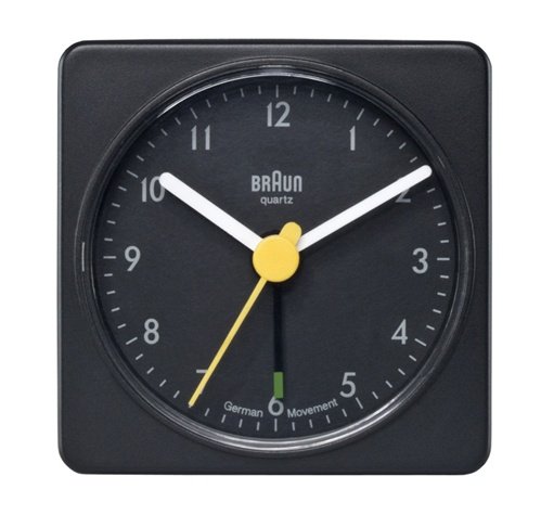 Braun's legendary travel alarm clocks were loved by many even after production stopped. Starting around April 20, 2011, the new licensed production of these clocks are available. This is the equivalent to the AB1A, originally designed by Dietrich Lubs with Dieter Rams in 1994. A pared down, very small but reliable clock, the AB1A had no snooze function, but a clear crisp crescendo alarm, and ran on one AA battery, many say, for a solid year. Silent German movement.
