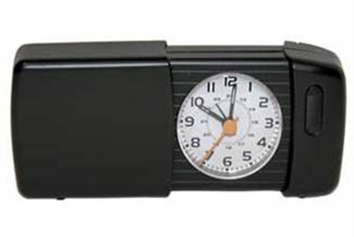 - Protective case serves as a sturdy base when opened and slides closed to protect the clock